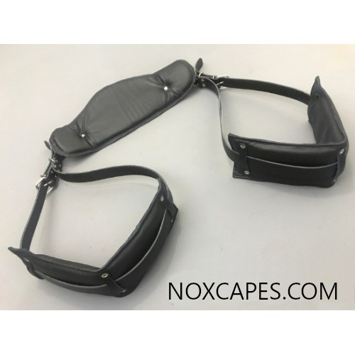 Made from genuine leather, our Portable Sling was created to provide comfort during long sessions. Its straps and hardware are robust enough to withstand heavy use and can be adjusted to the user's size or preference, as the shorter the straps are at the buckles, the more the legs will be lifted. Its padding makes this accessory very comfortable to wear. You'll want to be used by, or use by, some lucky person for hours in this incredible accessory!